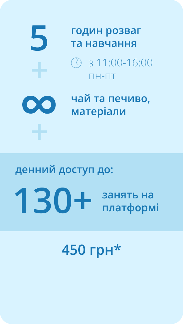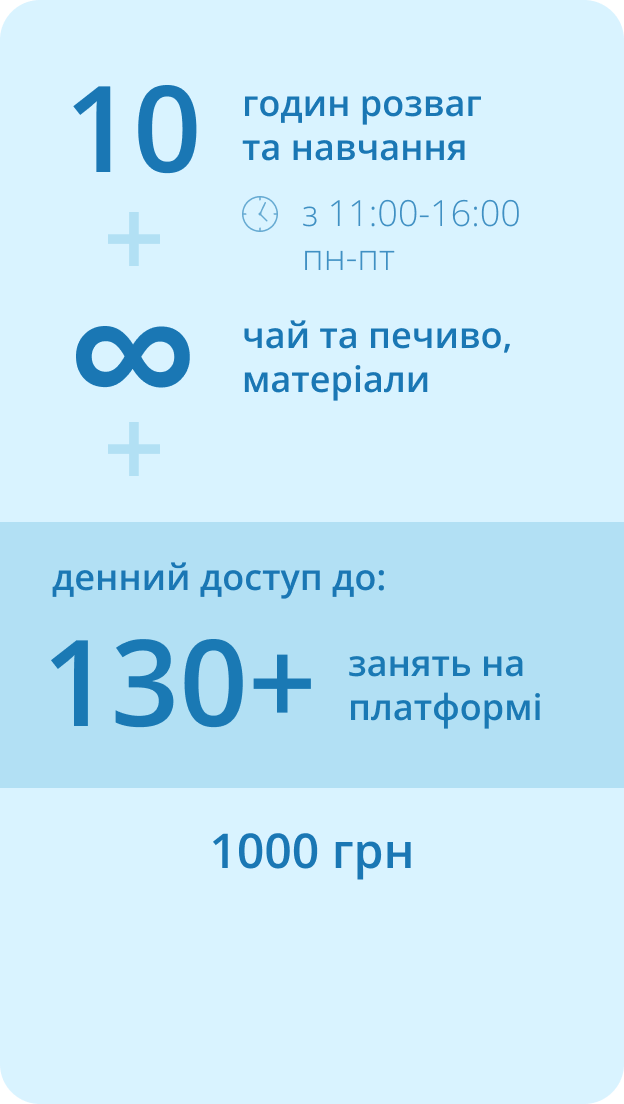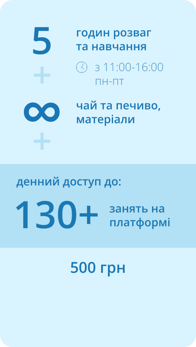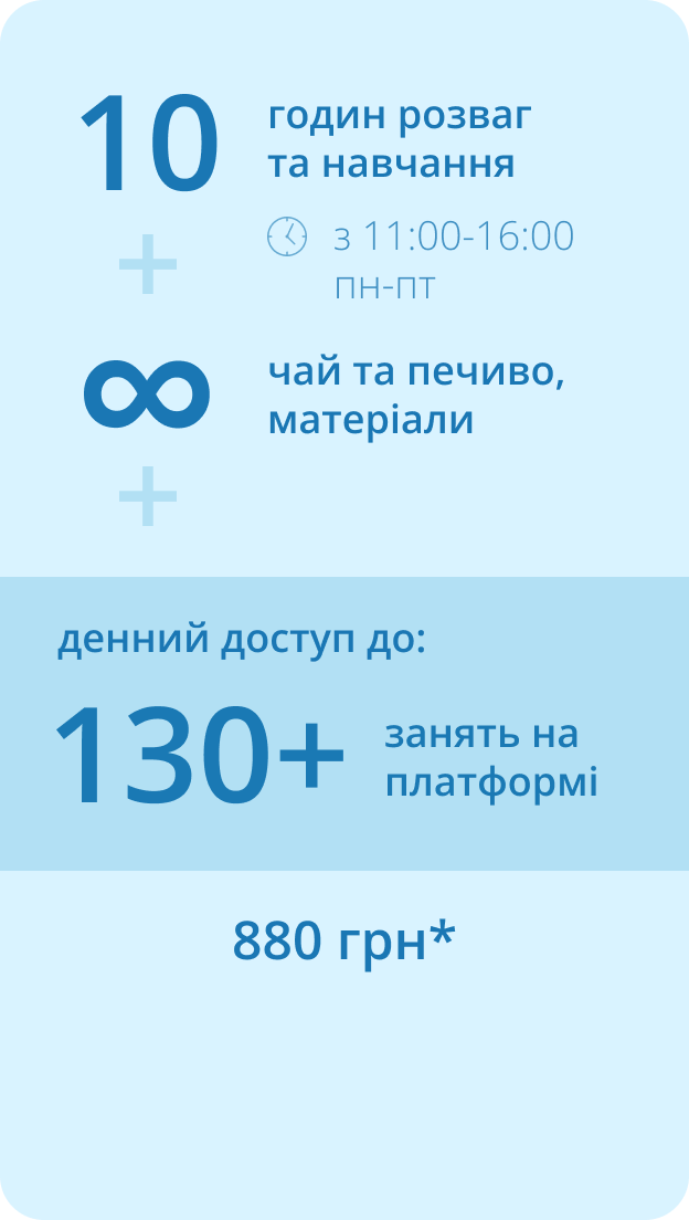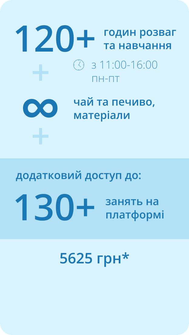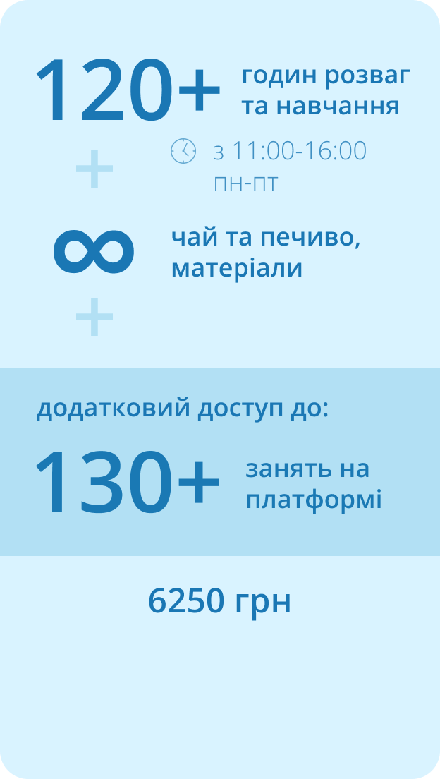 Summer Camp – навчання щодня з понеділка по пʼятницю з 11:00 до 16:00.